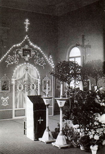 Die Gemeinde musste sich jeweils um einen Raum für ihre Gottesdienste bemühen. Zu Ostern 1938 erhielt sie z.B. einen Raum von der evangelischen Gemeinde der Heilig-Kreuz-Kirche. Über den Ostergottesdienst berichtete die "Augsburger National Zeitung" am 25. April 1938. Der Gottesdienst wurde von Vater Ioann aus Berlin zelebriert, der in seiner Predigt auch auf die Unterdrückung der Kirche und die Verfolgung der Gläubigen in der Heimat hinwies. Er habe dabei die Hoffnung geäußert, dass der "Tag nicht mehr fern ist, wo wir vereint den Ruf 'Christus ist erstanden' in unsere jetzt noch unterdrückte Heimat rufen dürfen".